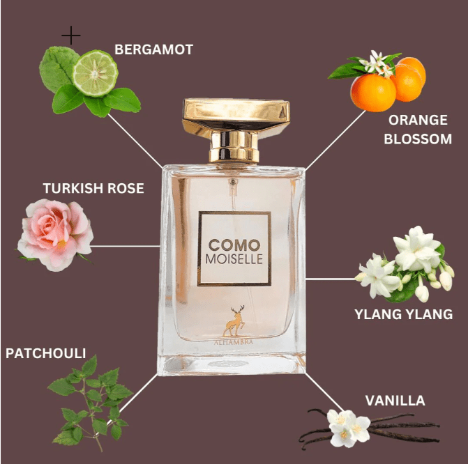 Como Moiselle de Maison Alhambra est un parfum féminin et raffiné, mêlant des notes fraîches d’agrumes à un cœur floral délicat et une base chaleureuse. Une fragrance élégante, idéale pour les femmes modernes et confiantes.