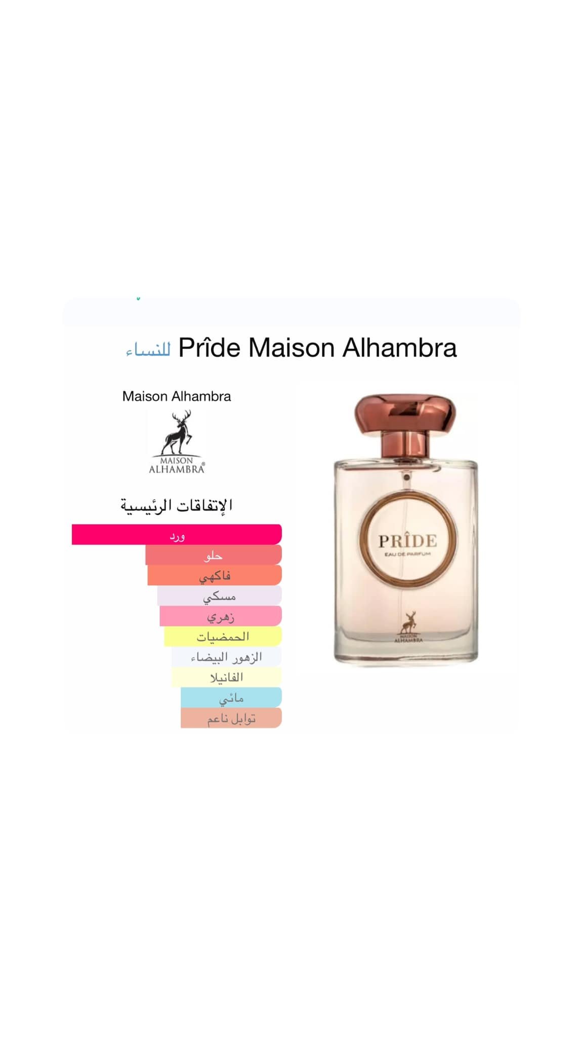 Pride de Maison Alhambra est un parfum audacieux et captivant, mélangeant des notes fraîches et fruitées à un cœur floral intense et une base sensuelle. Une fragrance qui célèbre la confiance et l’individualité.