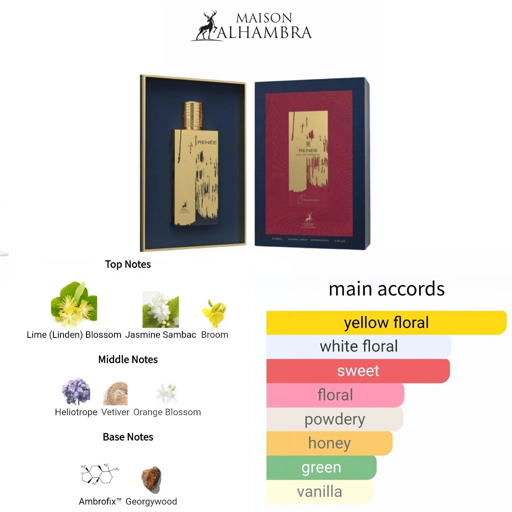 Rene de Maison Alhambra est un parfum élégant et moderne, alliant fraîcheur et douceur dans une composition équilibrée et raffinée. Une fragrance polyvalente, idéale pour un usage quotidien comme pour les occasions spéciales.